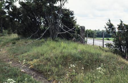 Pääasiassa maasta kasattu hautarakenne, joka erottuu selvästi ympäröivästä maastosta