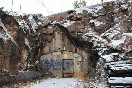kallion sisään louhittu miehistösuojaksi tai varastoksi tarkoitettu tila