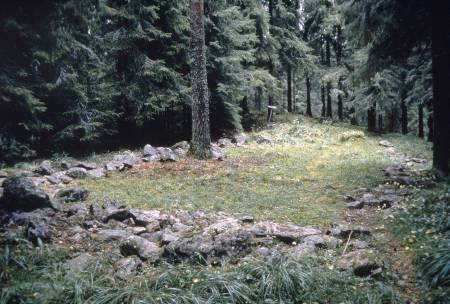 Pronssikaudella asuntona käytetyn rakenteen jäännökset, jotka erottuvat maaperässä kivivalleina, paalunjälkinä ja toisinaan terassimaisina maastomuotoina