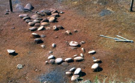Mökkonen, Teemu 2013. Stone setting filled with red ochre from the Keelaharju site, northernmost Baltic Sea region: A Stone Age grave in the context of north European burial traditions. Fennoscandia archaeologica XXX: 13-36.