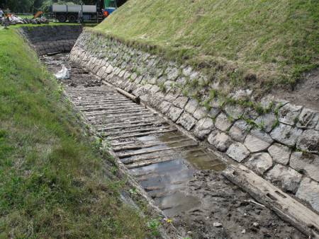 keskiaikaisen linnan tai bastionilinnoituksen edustalle tehty estekaivanto